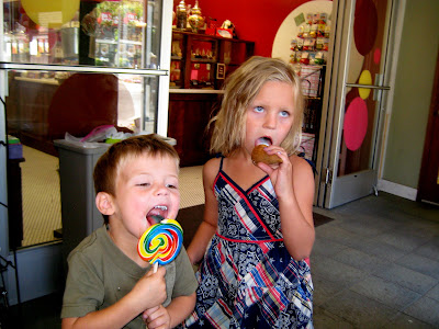 After the show we went to Chad's Aunt's house in Long Beach. Everyone on their street pitches in 20 bucks and rents bounce houses, water slides, a cotton candy machine and a snow cone machine. The kids loved it. Especially, since we said YES to everything cuz it was free!